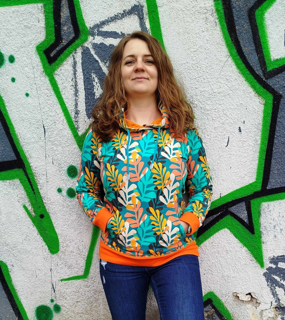 Uwielbiam soczyste kolory i nietuzinkowe wzory. Według mnie kolor ma moc i jest to nie tylko kwestia estetyki, ale konkretnych reakcji fizjologicznych, które zachodzą w naszym organizmie pod wpływem fali świetlnej o konkretnej długości. Ale jeśli zapragniesz czarnej bluzy, to też ją dla Ciebie uszyję. Ty decydujesz 😉